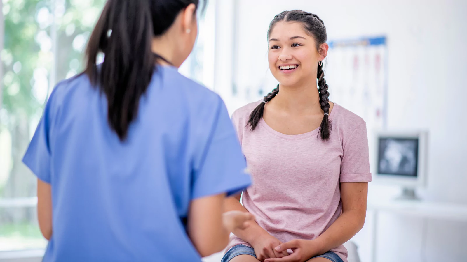 Rendelőinkben az első nőgyógyászati találkozás mindig egy beszélgetéssel kezdődik. Orvosunk rákérdez a menstruációs ciklusra, az esetleges panaszokra, a szedett gyógyszerekre és – ha már aktuális – a nemi életre is. Ezek az információk segítenek abban, hogy teljes képet kapjon a fiatal egészségi állapotáról és közben oldódjon a feszültséget is. Fontos tudni: nincs rossz válasz, semmi miatt nem kell zavarban lenni!